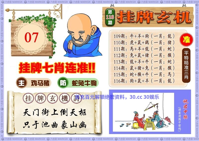 121期无字天书:财神送来猴和猪,跟牛胜定不后悔。羊20